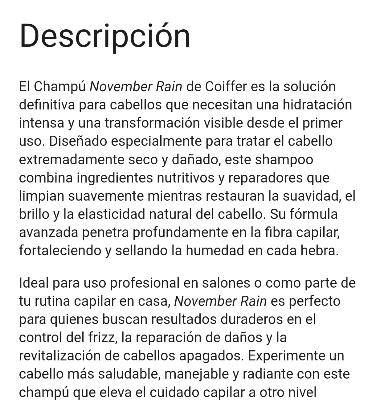 CHAMPU NOVEMBER RAIN HIDRATACION PROFUNDO COIFFER 350G