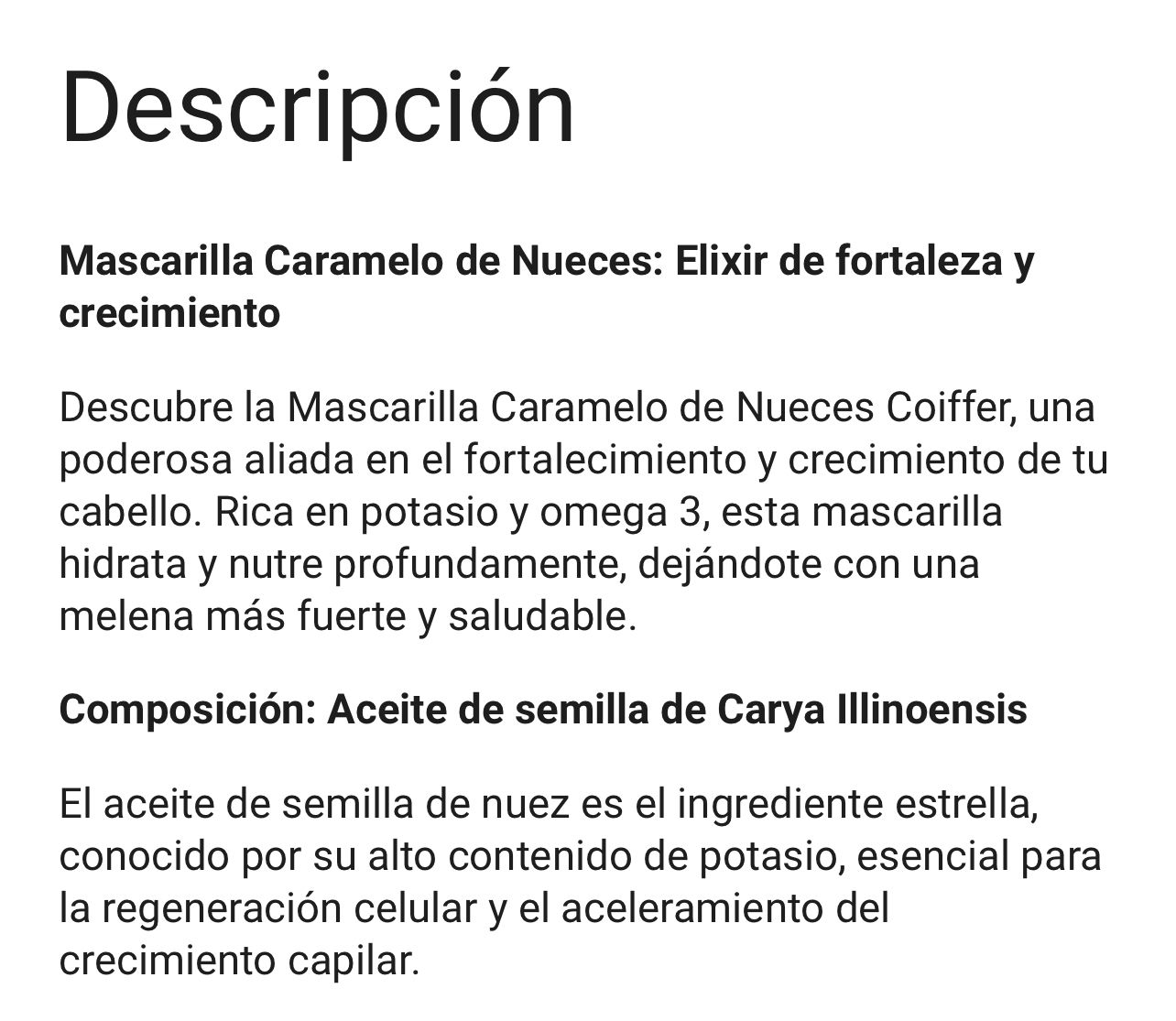 MASCARILLA CARAMELO NUECES NUTRICION FORTALEZA Y CRECIMIENTO COIFFER 500GR cantidad
